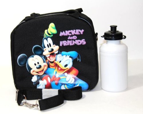 Disney Licensed: Lunch Bag for Kids Girls with Water Bottle & Adjustable Shoulder Strap (Black Mickey and Friends)