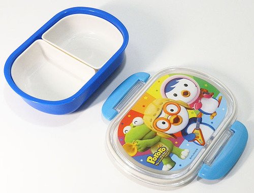 This Pororo lunchbox measures approx. 6" x 4" x 2"H.The plastic lid has the "lockable" function so you can be assured that they won't be leakage or spills.It will enchance your child's appetite!
