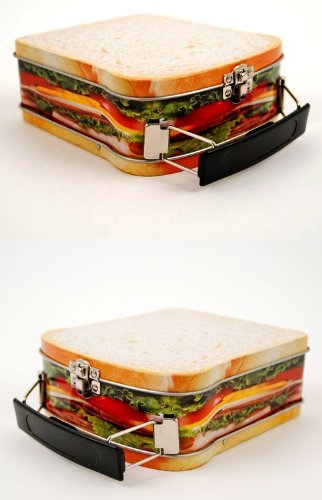 Set of 2 Sandwich Design Snack Boxes, Mini Lunchbox Cookie Tin, 4 1/2" X 5 1/4"
