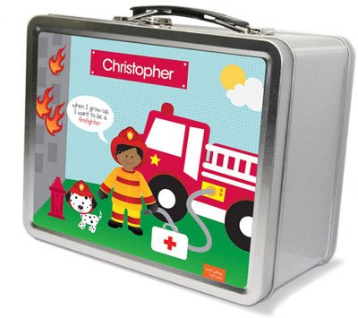 Spark & Spark Personalized Lunch Box for Kids - Call A Firefighter (African-American Boy)