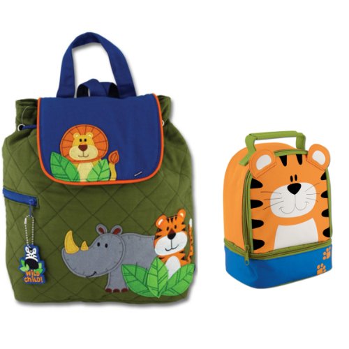 Whether going to daycare, preschool or on a day trip this cute Jungle Animals backpack makes it easy to pack up and go. It features a roomy interior with adjustable straps, and carrying handle. Fun coordinating zipper pull. Measures approx. 12" X 13.5" X 4".Stephen Joseph's Lunch Pals are cute and functional. Two separate compartments provide ample room for a full lunch. Fully lined and insulated and perfect for kids in daycare, preschool or kindergarten.
