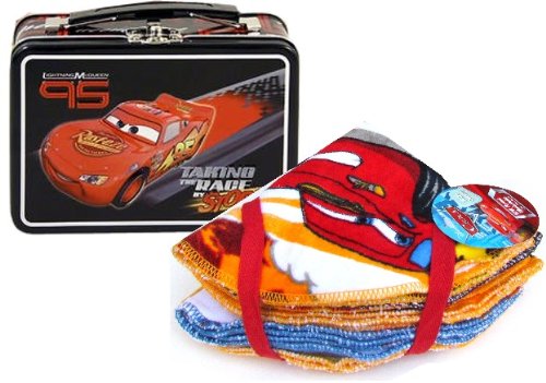 6-piece Pixar Cars Washcloth (12") Set and Pixar Cars MINI Lunch Box (5.5"x4"x3") - Pixar Cars Party Supplies and Favors for Kids - Pixar Cars Toys and Birthday Gifts for Boys