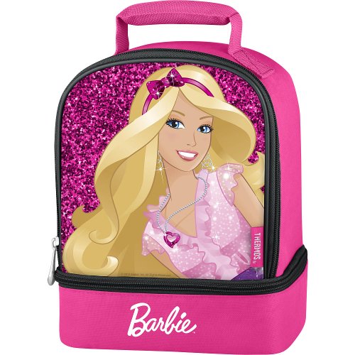 This Barbie "Sparkle" Dual-Compartment insulated lunchbox is a cool and stylish way to make school lunches fun. The Barbie "Sparkle" dual-compartment lunch bag offers children an easy way to tote along their favorite meals and snacks. Lunch box features a pink exterior with black accents and a goregous colorful image of the beautiful Barbie! Perfect lunch bag for any Barbie girl!