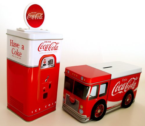 Double Gift Pack Of Coca-Cola Classic Licensed Coke Soda Retro Themed Metal Tin Toy Truck & Gas Pump Bank