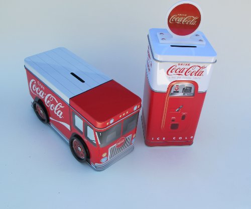 Father's day gift for dad, Set of 2 Classic Licensed Coca Cola Truck & Soda Dispenser - Metal Savings Banks