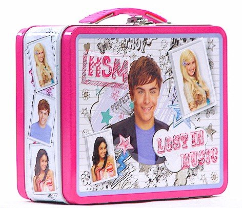 - A Tin Lunch Box featuring Troy in the middle with photos of Gabriella on the left and Sharpay on the right, the HSM logo on top left corner and the words Lost in Music on the bottom right corner