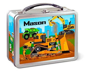 Kid's Personalized Classic Style Metal Lunch Box Site Work Contruction Truck