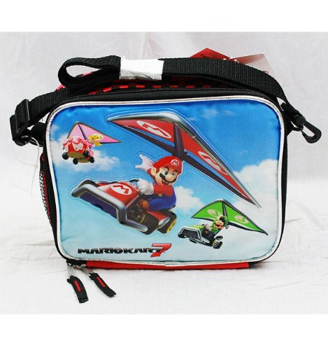Mario Kart Wii Soft Insulated Lunch BoxIf you know a child who is a Mario Kart fan, then let them show off their favorite character with this Mario Kart lunch kit. This lunchbox features a great image of Mario in a race. Made of durable insulated virgin vinyl, this lunch box features an easy-to-close zipper, and a double-stitched nylon handle. Easy to wash and store!Easy to clean.Has a sewn in handle and an easily removable shoulder strap.Dimensions: 9.5" W x 7.0" T x 3.5" D