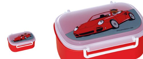 Adorable snack/lunch box with teddy-bear driven Porsche. Great kids gift.