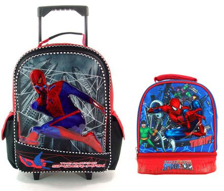 Spiderman Backpack Bundle with 18" Large Rolling Backpack and Lunch Box