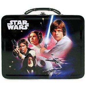 From the Star Wars Collection. A New Hope Metal Lunch Box. This black space age tote features Obi-Wan Kenobi, Luke Skywalker, Han Solo, Princess Leia, Darth Vader and many more alongside the Star Wars logo.Stars Wars "A New Hope" debuted in theaters on May 25, 1977. The visionary writer behind the movie, George Lucas, only opened the movie to 32 movie screens across America. The film was a box office sensation and went on to gross more than $307 million. Now, over 30 years later, Star Wars remains one of the most beloved films in America.