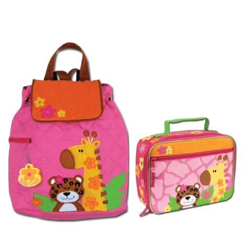 Stephen Joseph Quilted Girls Zoo Animal Backpack and Lunch Box Combo- Toddler Backpacks - Preschool Backpacks