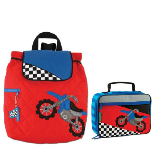 Stephen Joseph Quilted Motocross Backpack with Motocross Lunch Box Combo- Toddler Backpacks - Preschool Backpacks