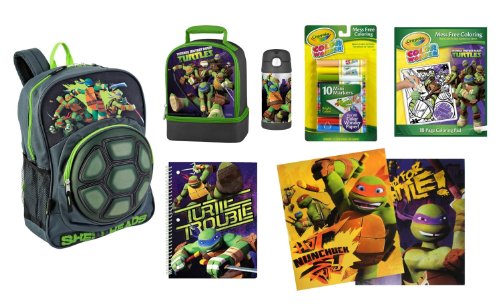 - Teenage Mutant Ninja Turtle Ultimate Back to School Set *Bonus Color Wonder includes: TMNT 16" Backpack, TMNT Dual Compartment Lunch Tote, TMNT Thermos Funtainer Bottle, 2 TMNT folders (colors may vary), 1 TMNT Spiral Notebook (colors may vary), TMNT Bonus Color Wonder Coloring Pad, and Bonus Color Wonder Mini Marker Pack!