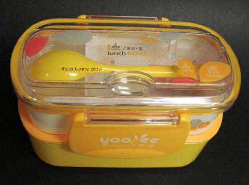 Two Tiered Bento Lunchbox with Spoon, Yellow